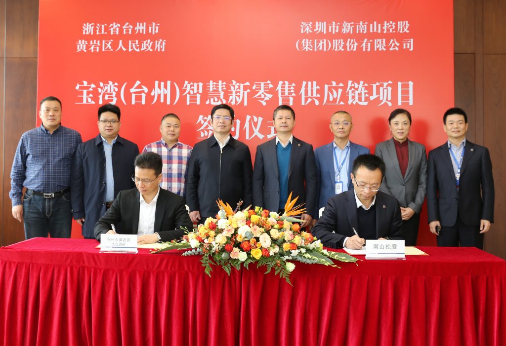 2020.1212月23日,寶灣(臺(tái)州)智慧新零售供應(yīng)鏈項(xiàng)目框架協(xié)議簽約儀式在深圳赤灣總部大廈舉行。臺(tái)州市黃巖區(qū)委書(shū)記陳建勛,區(qū)委常委管江志,中國(guó)南山集團(tuán)黨委書(shū)記、董事長(zhǎng)王志賢,南山控股總經(jīng)理王世云,南山控股副總經(jīng)理兼寶灣物流董事長(zhǎng)舒謙,南山控股副總經(jīng)理兼南山地產(chǎn)總經(jīng)理朱濤,寶灣物流總經(jīng)理馮海虹等領(lǐng)導(dǎo)出席簽約儀式。