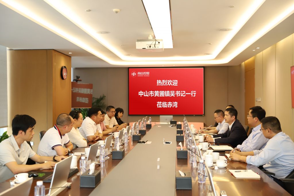 2021.044月2日,中山市黃圃鎮(zhèn)黨委書記吳坤科一行來訪南山控股, 與王世云總經(jīng)理座談,雙方就相關(guān)產(chǎn)業(yè)的合作機(jī)會(huì)進(jìn)行了友好交流。黃圃鎮(zhèn)副鎮(zhèn)長(zhǎng)曾慶籌、馮毅江,南山控股副總經(jīng)理兼寶灣產(chǎn)城總經(jīng)理焦賢才出席座談。
