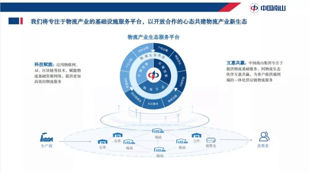 此外,在以物聯(lián)網(wǎng)、大數(shù)據(jù)、云計算、人工智能、區(qū)塊鏈等新興技術(shù)引領(lǐng)的新一輪科技浪潮下,未來科技將成為一體化供應(yīng)鏈物流服務(wù)的第一革新要素。這里的核心是把從原材料生產(chǎn)制造到倉儲管理,到貨物運輸,再到售后,通過新技術(shù)鏈接在一起。從而在產(chǎn)業(yè)端,為生產(chǎn)制造業(yè)實現(xiàn)智能化生產(chǎn)、網(wǎng)絡(luò)化協(xié)同、個性化定制的新模式和新業(yè)態(tài)。未來,中國南山集團(tuán)在“兩輪驅(qū)動”的發(fā)展下,將圍繞物流場景與物流合作伙伴互惠共贏共建大物流生態(tài)平臺,為客戶提供端到端的一體化供應(yīng)鏈物流服務(wù)。