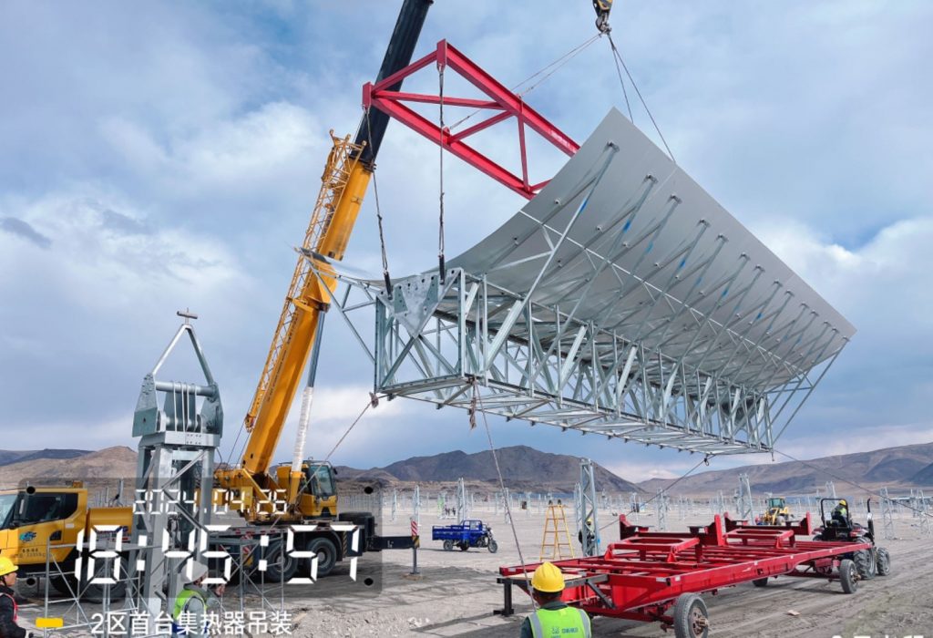 西藏扎布耶項目是西藏自治區(qū)重點項目,由寶武清潔能源有限公司投資建設。項目位于日喀則市仲巴縣以北直線距離約165千米處的扎布耶鹽湖旁,是全球首個在高海拔、電網(wǎng)末端地區(qū),以槽式光熱電站為主電源實現(xiàn)清潔能源孤網(wǎng)運行的“珠峰”項目,可儲熱并實現(xiàn)全天候持續(xù)發(fā)電,是真正的清潔電力能源。項目涵蓋了40MW槽式光熱電站、35MW光伏電站、20MW/40MWh電化學儲能、蒸汽供應系統(tǒng)等多種能源形態(tài),是典型的熱電綜合能源項目。中國核能科技下屬中核南京公司(下稱中核南京)作為重要的EPC分包商,于2023年6月開始參與了該項目建設工作,負責40MW槽式光熱電站涉及的集熱器生產(chǎn)線安裝、調(diào)試,以及集熱島工程建設等工作。目前項目正按計劃有序推進,已完成總體工程進度約50%。