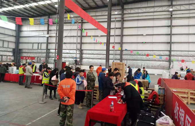 特賣會(huì)期間,全體員工在完成本職工作的前提下,自愿加班加點(diǎn),激情滿滿,深夜點(diǎn)燈是家常便飯。有的員工甚至一周沒回家,吃住在園區(qū);有的員工孩子高燒不退,周五下班匆匆回家后,周六一早又趕回工作現(xiàn)場(chǎng);有的員工身懷六甲,依舊不辭辛勞堅(jiān)守崗位……正是因?yàn)槿w員工的共同努力,今年云商特賣會(huì)第一次“吞吐”數(shù)千種產(chǎn)品,數(shù)量絲毫不差;第一次嘗試倉(cāng)庫(kù)管理,也完成得有條不紊;第一次網(wǎng)上接單數(shù)量如此多,單單圓滿出貨。