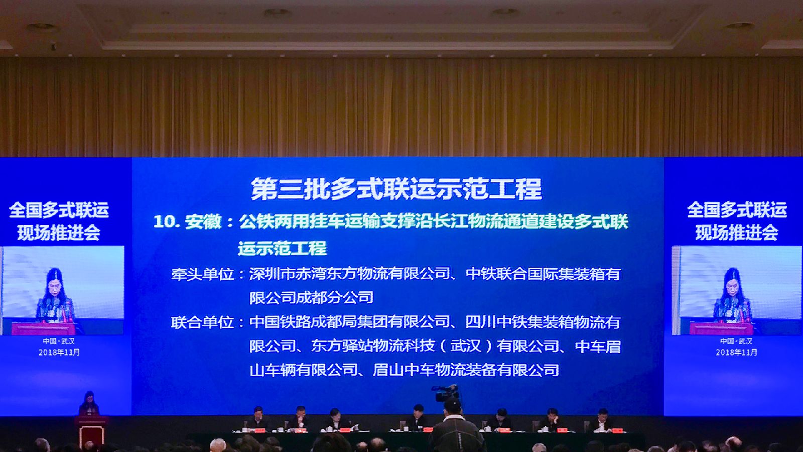 2019.022018年11月20日,交通運輸部辦公廳、國家鐵路局綜合司、中國民航局綜合司、國家郵政局辦公室、中國鐵路總公司在武漢聯(lián)合召開全國多式聯(lián)運現(xiàn)場推進會。“公鐵兩用掛車運輸支撐沿長江物流通道建設多式聯(lián)運示范工程”作為安徽省唯一項目,入選第三批24個多式聯(lián)運示范工程項目名單。