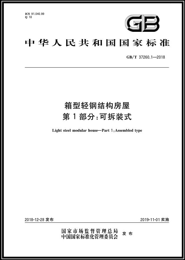 2019.03日前,由國(guó)家市場(chǎng)監(jiān)督管理總局、中國(guó)國(guó)家標(biāo)準(zhǔn)化管理委員會(huì)聯(lián)合發(fā)布了《箱型輕鋼結(jié)構(gòu)房屋第1部分:可拆裝式》的國(guó)家標(biāo)準(zhǔn)(“箱型輕鋼結(jié)構(gòu)房屋”即行業(yè)內(nèi)俗稱的”打包箱”),這是國(guó)內(nèi)第一個(gè)關(guān)于打包箱產(chǎn)品的國(guó)家標(biāo)準(zhǔn)!旨在建立促進(jìn)建筑工業(yè)化的設(shè)計(jì)、施工、部品生產(chǎn)等環(huán)節(jié)的標(biāo)準(zhǔn)體系,推廣適合工業(yè)化生產(chǎn)的預(yù)制裝配式建筑體系,提高建筑工業(yè)化技術(shù)集成水平。住房和城鄉(xiāng)建設(shè)部的指導(dǎo)下,雅致作為集成建筑行業(yè)的引領(lǐng)者,是該國(guó)標(biāo)的主編單位。目前打包箱產(chǎn)品主要應(yīng)用于工程臨建領(lǐng)域,工地臨建市場(chǎng)將迎來(lái)新一輪的綠色建筑革命。