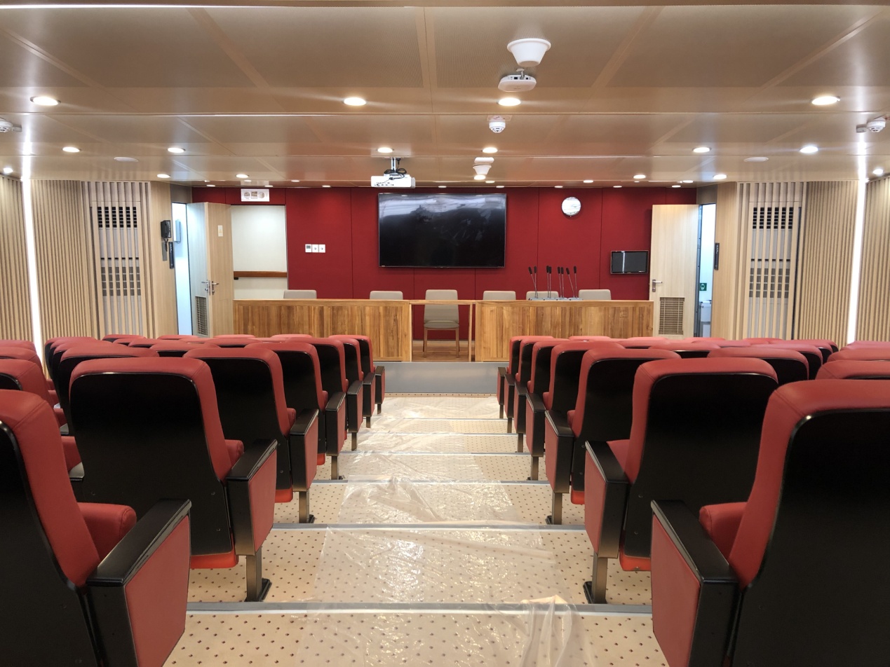 采用華南建材產(chǎn)品進(jìn)行內(nèi)舾裝的雪龍2號船會議室實景